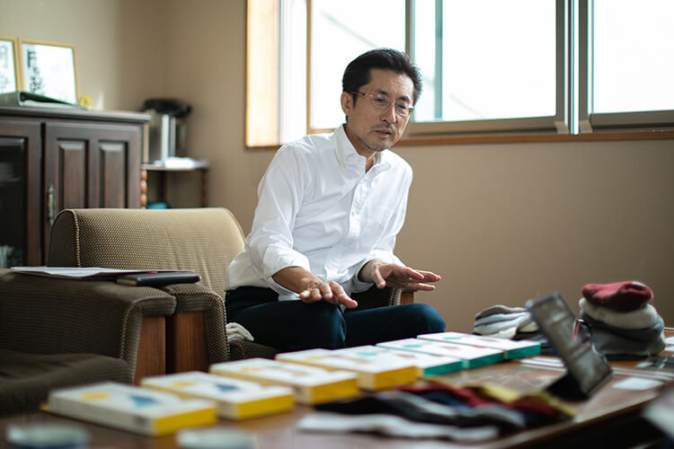 数年前の話になるんですが、会社の60周年を控えたタイミングで私自身すごく悩んでいたんです。そもそも60周年といえば企業還暦ですので、一度初心に返る必要があると考えていました。じゃあ靴下の真のお客様は誰なんだろうと再考していく中で、皆さんの足こそが真のお客様なんだと捉えたんです。そんな中でご縁がある方と足の勉強会を開催することになりました。基本的な足の構造などを学んでいくと、膝だったり腰に問題を抱えている人のほとんどが足のアーチがつぶれていると知ることができました。それを正しいかたちにすることが大事で、靴下で改善するのであれば凄いことだと。そこからうちの工場の技師たちを交えて試行錯誤する中で、『ケアソク ととのえる』の原型が生まれたという経緯があります。